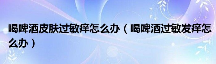 摘要大家好,知识小编来为大家解答以上的问题。喝啤酒皮肤过敏痒怎么办,喝啤酒过敏发痒怎么办很多人还不知道,现在让我们一起来看看吧!1、喝