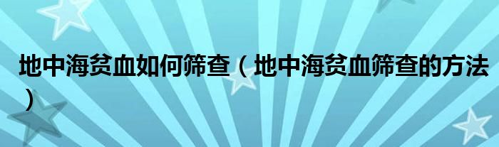 大家好,知识小编来为大家解答以上的问题。地中海贫血如何筛查,地中海贫血筛查的方法很多人还不知道,现在让我们一起来看看吧!