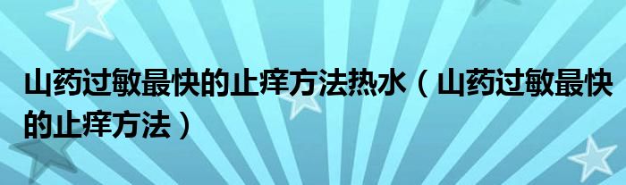 摘要大家好,知识小编来为大家解答以上的问题。山药过敏最快的止痒方法热水,山药过敏最快的止痒方法很多人还不知道,现在让我们一起来看看吧!