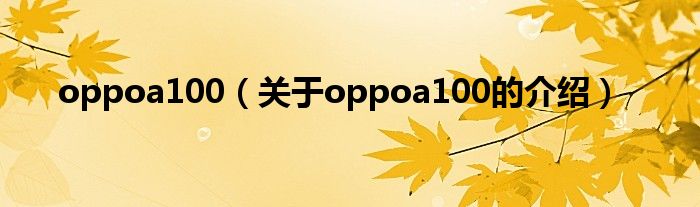 大家好,小新来为大家解答以上的问题。oppoa100,关于oppoa100的介绍很多人还不知道,现在让我们一起来看看吧!