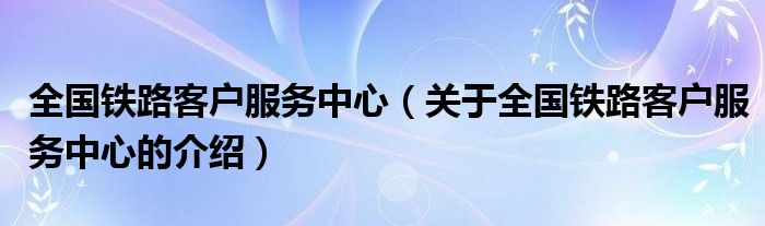 大家好,小新来为大家解答以上的问题。全国铁路客户服务中心,关于全国铁路客户服务中心的介绍很多人还不知道,现在让我们一起来看看吧!