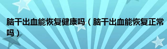 大家好,知识小编来为大家解答以上的问题。脑干出血能恢复健康吗,脑干出血能恢复正常吗很多人还不知道,现在让我们一起来看看吧!