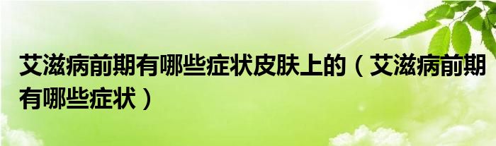 大家好,知识小编来为大家解答以上的问题。艾滋病前期有哪些症状皮肤上的,艾滋病前期有哪些症状很多人还不知道,现在让我们一起来看看吧!