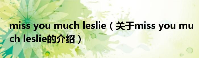 摘要 大家好,小新来为大家解答以上的问题。miss you much leslie,关于miss you much leslie的介绍很多人还不知道,现在让我们一起来看看