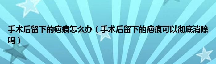 摘要大家好,知识小编来为大家解答以上的问题。手术后留下的疤痕怎么办,手术后留下的疤痕可以彻底消除吗很多人还不知道,现在让我们一起来看看