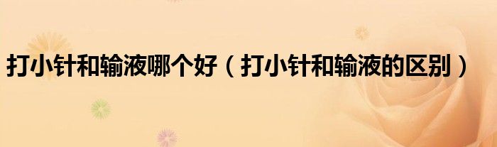 摘要大家好,知识小编来为大家解答以上的问题。打小针和输液哪个好,打小针和输液的区别很多人还不知道,现在让我们一起来看看吧!打小针和输液