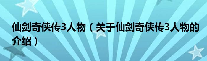 大家好,小新来为大家解答以上的问题。仙剑奇侠传3人物,关于仙剑奇侠传3人物的介绍很多人还不知道,现在让我们一起来看看吧!