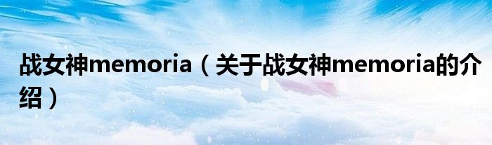 大家好,小新来为大家解答以上的问题。战女神memoria,关于战女神memoria的介绍很多人还不知道,现在让我们一起来看看吧!