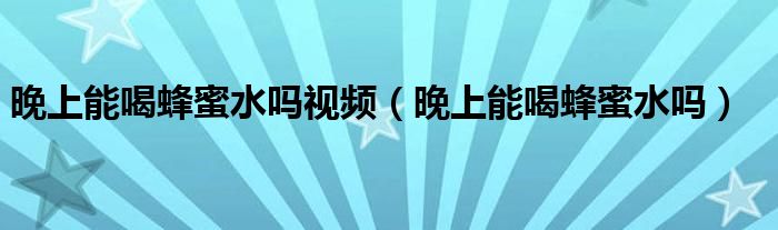 大家好,知识小编来为大家解答以上的问题。晚上能喝蜂蜜水吗视频,晚上能喝蜂蜜水吗很多人还不知道,现在让我们一起来看看吧!