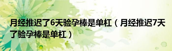 摘要大家好,知识小编来为大家解答以上的问题。月经推迟了6天验孕棒是单杠,月经推迟7天了验孕棒是单杠很多人还不知道,现在让我们一起来看看吧
