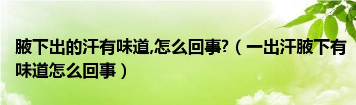 大家好,知识小编来为大家解答以上的问题。腋下出的汗有味道,怎么回事?,一出汗腋下有味道怎么回事很多人还不知道,现在让我们一起来看看吧!