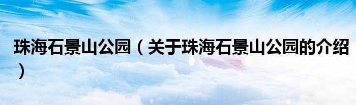 大家好,小新来为大家解答以上的问题。珠海石景山公园,关于珠海石景山公园的介绍很多人还不知道,现在让我们一起来看看吧!
