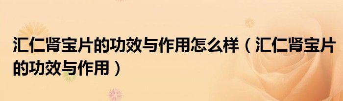 大家好,知识小编来为大家解答以上的问题。汇仁肾宝片的功效与作用怎么样,汇仁肾宝片的功效与作用很多人还不知道,现在让我们一起来看看吧!