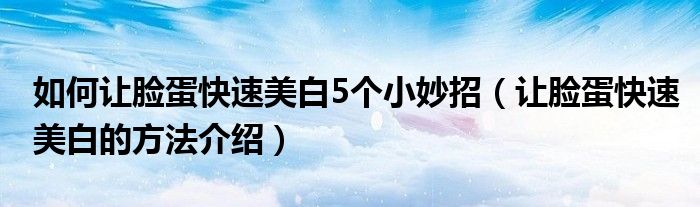 大家好,伊人来为大家解答以上问题。如何让脸蛋快速美白5个小妙招,让脸蛋快速美白的方法介绍很多人还不知道,现在让我们一起来看看吧!