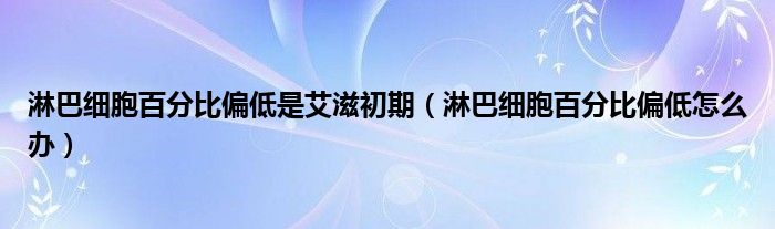 摘要大家好,知识小编来为大家解答以上的问题。淋巴细胞百分比偏低是艾滋初期,淋巴细胞百分比偏低怎么办很多人还不知道,现在让我们一起来看看