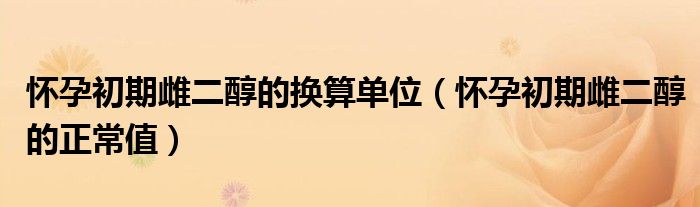 摘要大家好,知识小编来为大家解答以上的问题。怀孕初期雌二醇的换算单位,怀孕初期雌二醇的正常值很多人还不知道,现在让我们一起来看看吧!因