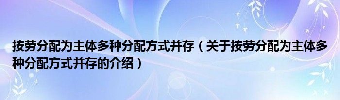 大家好,小新来为大家解答以上的问题。按劳分配为主体多种分配方式并存,关于按劳分配为主体多种分配方式并存的介绍很多人还不知道,现在让我们一起来看看吧!