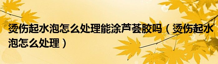 摘要大家好,知识小编来为大家解答以上的问题。烫伤起水泡怎么处理能涂芦荟胶吗,烫伤起水泡怎么处理很多人还不知道,现在让我们一起来看看吧!