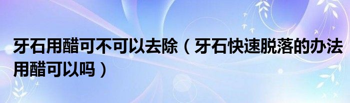 大家好,知识小编来为大家解答以上的问题。牙石用醋可不可以去除,牙石快速脱落的办法用醋可以吗很多人还不知道,现在让我们一起来看看吧!