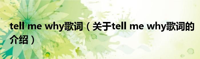大家好,小新来为大家解答以上的问题。tell me why歌词,关于tell me why歌词的介绍很多人还不知道,现在让我们一起来看看吧!