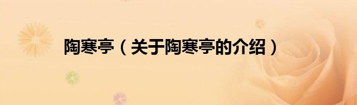 大家好,小新来为大家解答以上的问题。陶寒亭,关于陶寒亭的介绍很多人还不知道,现在让我们一起来看看吧!