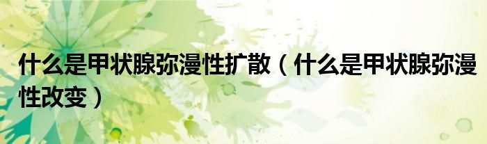 大家好,知识小编来为大家解答以上的问题。什么是甲状腺弥漫性扩散,什么是甲状腺弥漫性改变很多人还不知道,现在让我们一起来看看吧!