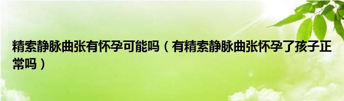 1、如果有精索静脉曲张,怀孕了也是正常的,因为精索静脉曲张会引起精子质量和精液质量的变化。男性患有精索静脉曲张,其中20%患有不育症。