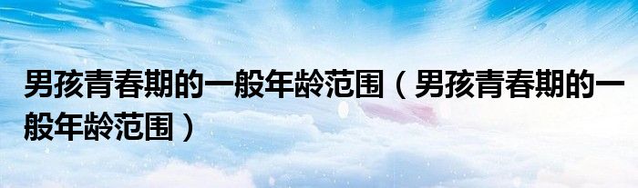 摘要大家好,知识小编来为大家解答以上的问题。男孩青春期的一般年龄范围,男孩青春期的一般年龄范围很多人还不知道,现在让我们一起来看看吧!