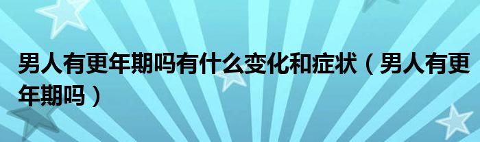 摘要大家好,知识小编来为大家解答以上的问题。男人有更年期吗有什么变化和症状,男人有更年期吗很多人还不知道,现在让我们一起来看看吧!更年