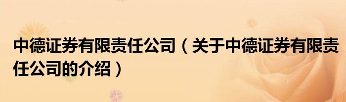 摘要大家好,小新来为大家解答以上的问题。中德证券有限责任公司,关于中德证券有限责任公司的介绍很多人还不知道,现在让我们一起来看看吧!1
