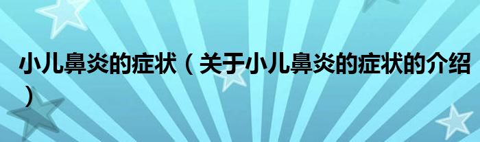 大家好,小新来为大家解答以上的问题。小儿鼻炎的症状,关于小儿鼻炎的症状的介绍很多人还不知道,现在让我们一起来看看吧!