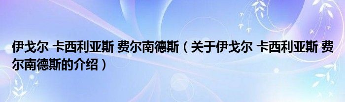 摘要 大家好,小新来为大家解答以上的问题。伊戈尔 卡西利亚斯 费尔南德斯,关于伊戈尔 卡西利亚斯 费尔南德斯的介绍很多人还不知道,现在让