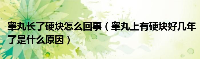 摘要大家好,知识小编来为大家解答以上的问题。睾丸长了硬块怎么回事,睾丸上有硬块好几年了是什么原因很多人还不知道,现在让我们一起来看看吧