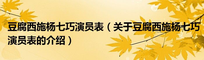 摘要大家好,小新来为大家解答以上的问题。豆腐西施杨七巧演员表,关于豆腐西施杨七巧演员表的介绍很多人还不知道,现在让我们一起来看看吧!1