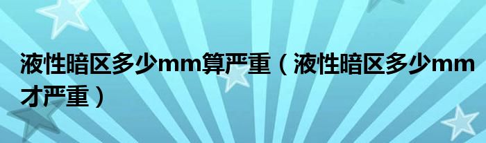 大家好,知识小编来为大家解答以上的问题。液性暗区多少mm算严重,液性暗区多少mm才严重很多人还不知道,现在让我们一起来看看吧!
