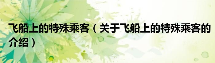 大家好,小新来为大家解答以上的问题。飞船上的特殊乘客,关于飞船上的特殊乘客的介绍很多人还不知道,现在让我们一起来看看吧!
