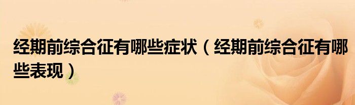 大家好,知识小编来为大家解答以上的问题。经期前综合征有哪些症状,经期前综合征有哪些表现很多人还不知道,现在让我们一起来看看吧!