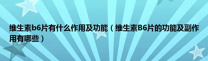 大家好,知识小编来为大家解答以上的问题。维生素b6片有什么作用及功能,维生素B6片的功能及副作用有哪些很多人还不知道,现在让我们一起来看看吧!