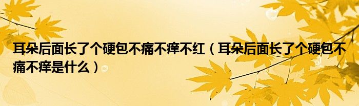 大家好,知识小编来为大家解答以上的问题。耳朵后面长了个硬包不痛不痒不红,耳朵后面长了个硬包不痛不痒是什么很多人还不知道,现在让我们一起来看看吧!
