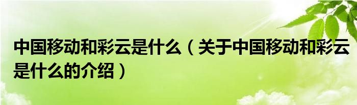 大家好,小新来为大家解答以上的问题。中国移动和彩云是什么,关于中国移动和彩云是什么的介绍很多人还不知道,现在让我们一起来看看吧!