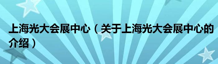 摘要大家好,小新来为大家解答以上的问题。上海光大会展中心,关于上海光大会展中心的介绍很多人还不知道,现在让我们一起来看看吧!1、上海光