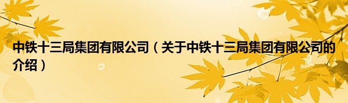 1、中铁十三局集团有限公司是世界500强中国铁建所属的中央企业,是集施工、设计、科研、地产、物流等于一体的大型工程总承包企业集团。