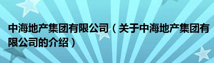 摘要大家好,小新来为大家解答以上的问题。中海地产集团有限公司,关于中海地产集团有限公司的介绍很多人还不知道,现在让我们一起来看看吧!1