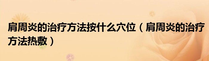 摘要大家好,知识小编来为大家解答以上的问题。肩周炎的治疗方法按什么穴位,肩周炎的治疗方法热敷很多人还不知道,现在让我们一起来看看吧!肩
