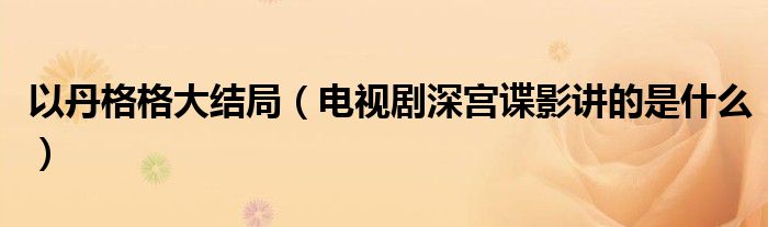 大家好,伊人来为大家解答以上问题。以丹格格大结局,电视剧深宫谍影讲的是什么很多人还不知道,现在让我们一起来看看吧!