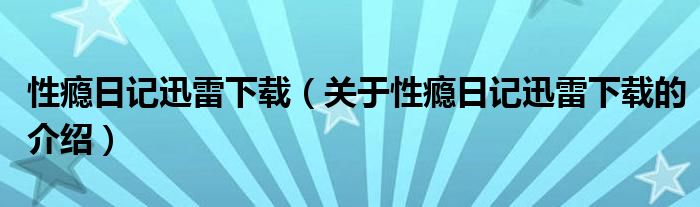 大家好,小新来为大家解答以上的问题。性瘾日记迅雷下载,关于性瘾日记迅雷下载的介绍很多人还不知道,现在让我们一起来看看吧!