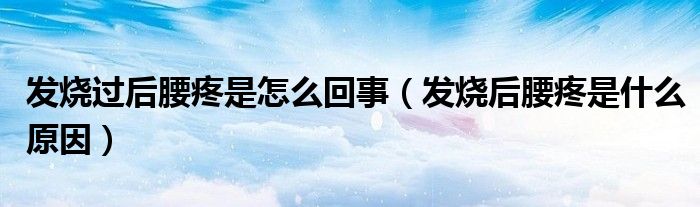 大家好,知识小编来为大家解答以上的问题。发烧过后腰疼是怎么回事,发烧后腰疼是什么原因很多人还不知道,现在让我们一起来看看吧!