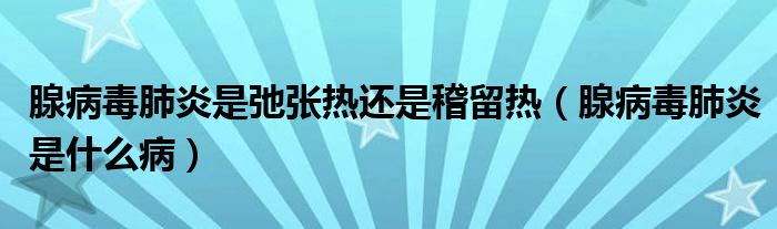 大家好,知识小编来为大家解答以上的问题。腺病毒肺炎是弛张热还是稽留热,腺病毒肺炎是什么病很多人还不知道,现在让我们一起来看看吧!
