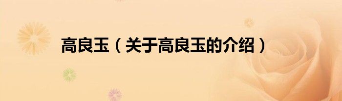大家好,小新来为大家解答以上的问题。高良玉,关于高良玉的介绍很多人还不知道,现在让我们一起来看看吧!