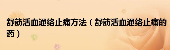 大家好,知识小编来为大家解答以上的问题。舒筋活血通络止痛方法,舒筋活血通络止痛的药很多人还不知道,现在让我们一起来看看吧!